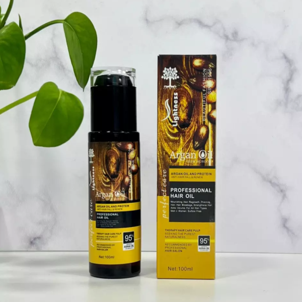 روغن آرگان لایتنس حاوی ۹۵ درصد روغن آرگان طبیعی در ترکیبات خود است. که باعث نرمی و لطافت بافت مو شده و ساقه مو را تقویت می کند. روغن آرگان از خواص فوق العاده ای برخوردار است از جمله اینکه، باعث درخشان شدن و شادابی بافت مو می شود. وزی و خشکی را از بین برده و از ایجاد موخوره و شکنندگی نیز جلوگیری میکند. روغن آرگان حاوی مقادیر زیادی اسید چرب و ویتامین E است که باعث تقویت و سلامت ساختار مو شده و موهایی سالم و زیبا را به ارمغان می آورد. روغن آرگان لایتنس، بدون سولفات است بنابراین از موها به خوبی مراقبت و محافظت کرده و موهایی درخشان را به شما می بخشد. همچنین بخاطر نداشتن سولفات موهای کراتینه به راحتی میتوانند از آن استفاده کنند. روغن آرگان لایتنس رطوبت مو را حفظ کرده و از ریزش مو جلوگیری میکند.