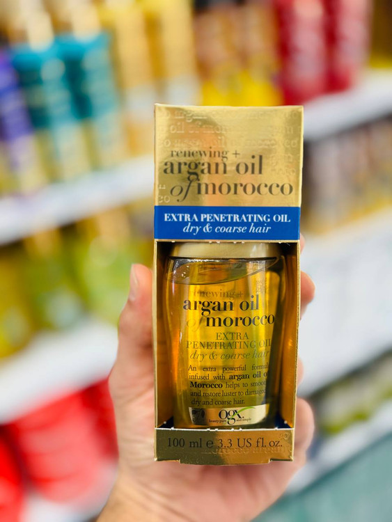 روغن آرگان اوجی ایکس یک روغن مو محافظ در برابر عوامل محیطی بوده که به حفظ و ذخیره رطوبت در موها کمک کرده و خاصیت ارتجاعی آنها را افزایش میدهد. این محصول حاوی روغن آرگان مراکشی است که با افزایش تقویت و تغذیه موها، موجب بهبود سلامت کوتیکولهای مو شده و از آنها در برابر خشکی و شکنندگی محافظت میکند. استفاده از روغن آرگان ogx اصل باعث افزایش درخشش و براقیت طبیعی مو میشود؛ همچنین با رطوبت رسانی از بروز موخوره جلوگیری میکند و به ترمیم موها میپردازد.