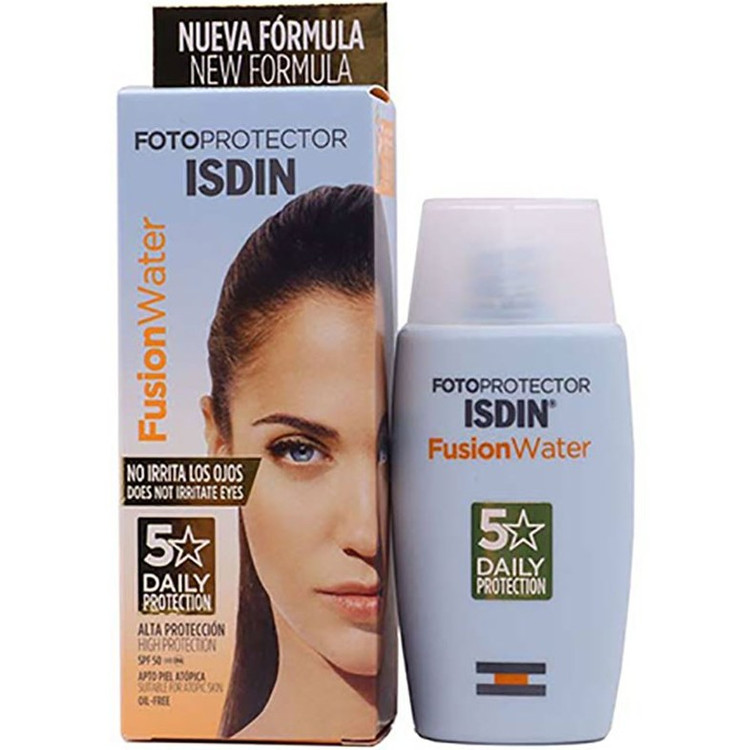 ضد آفتاب فیوژن واتر ایزدین Isdin Fusion Water SPF50 برخلاف مدل رنگی اش یک کرم ضد آفتاب مناسب انواع پوست است. این ضد آفتاب با SPF50 از پوست در برابر اشعه های UVA و UVB مراقبت میکند. ضد آفتاب فیوژن واتر با قابلیت جذب فوری، روی پوستهای خیس و نم دار قابل استفاده می باشد. این محصول دارای بافت سبک فیوژن واتر است و حس سنگینی و چربی روی پوست ایجاد نمیکند؛و از خشکی پوست نیز جلوگیری میکند.