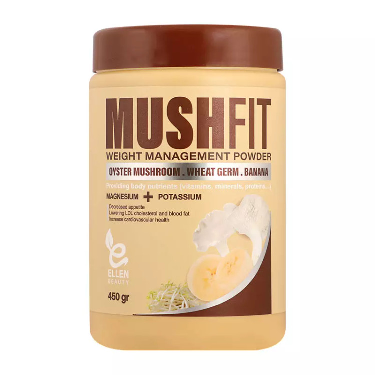 ماش فیت پودر قارچ صدفی به همراه پودر جوانه گندم و پودر موز 450 گرمی mush fit