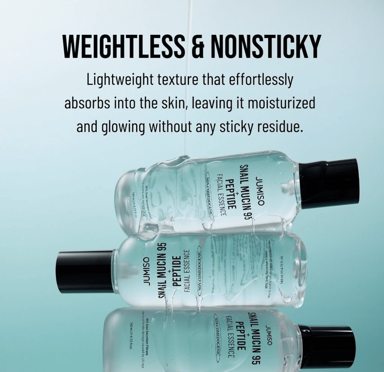 • مناسب برای انواع پوست: JUMISO Snail Mucin 95 + Peptide فاقد مواد شیمیایی مضر و عطر مصنوعی است و برای انواع پوست، حتی پوستهای حساس، مناسب است.