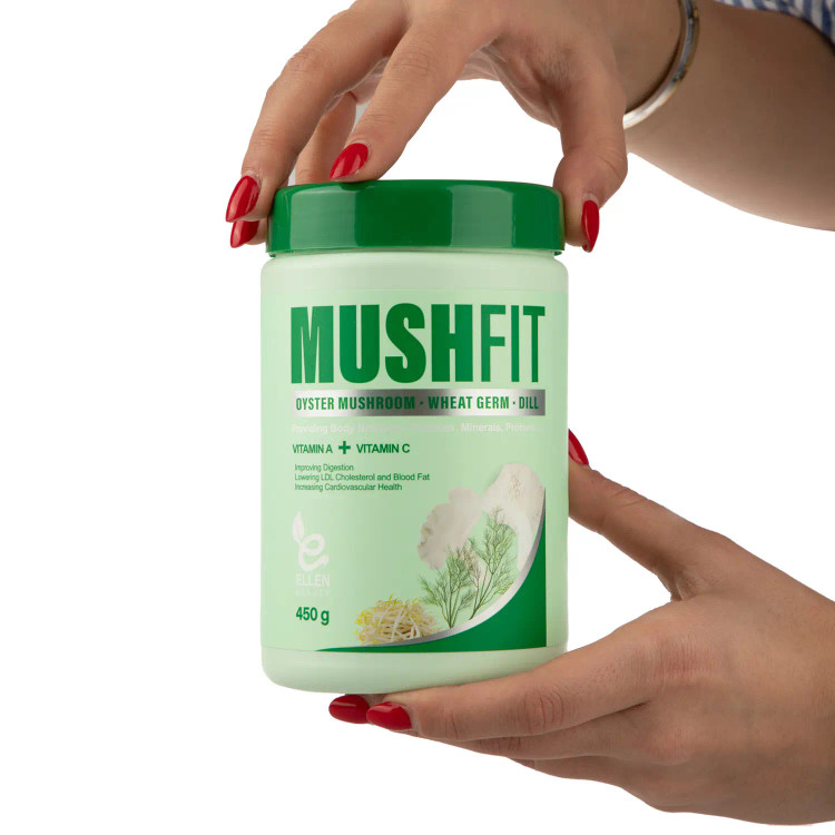 پودر قارچ صدفی به همراه پودر جوانه گندم و پودر شوید 450 گرمی ماشفیت