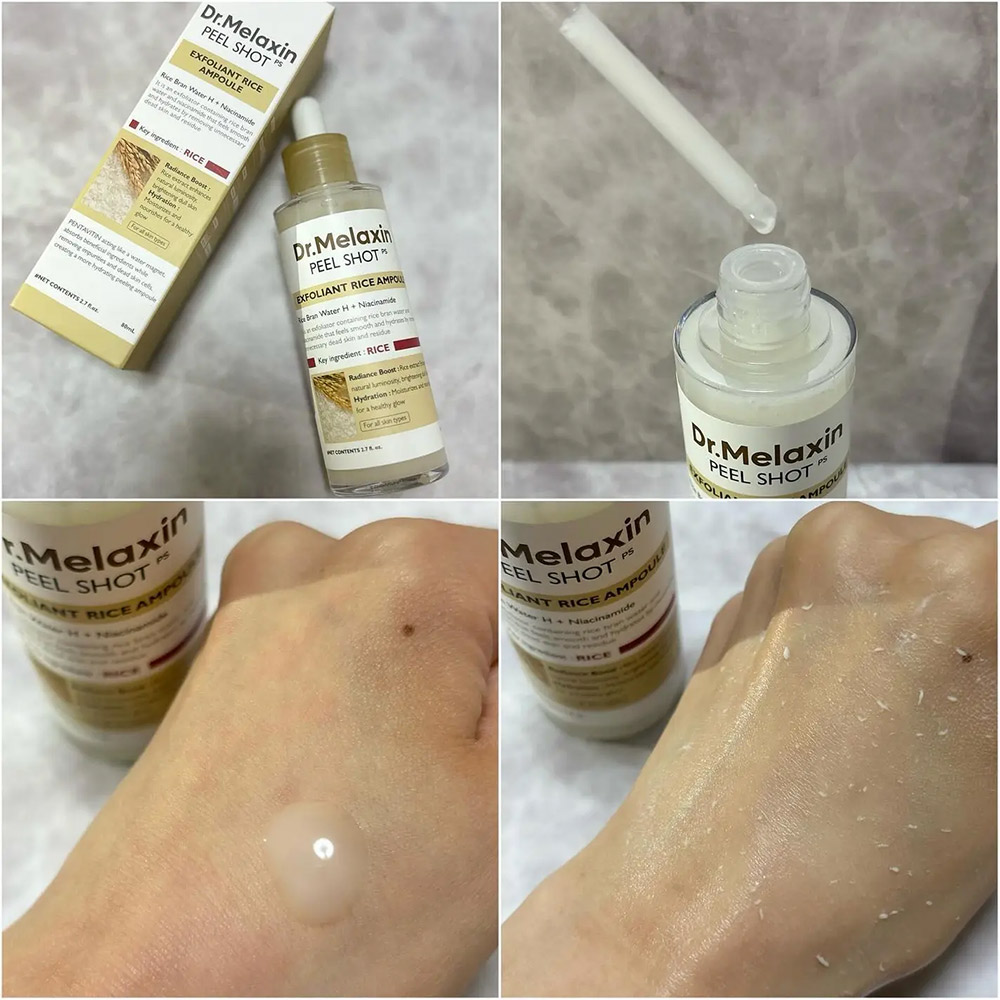 مزایاآمپول پیل شات برنج دکتر ملاکسین حجم ۸۰ میلی لیتر لایه بردار و روشن کننده: