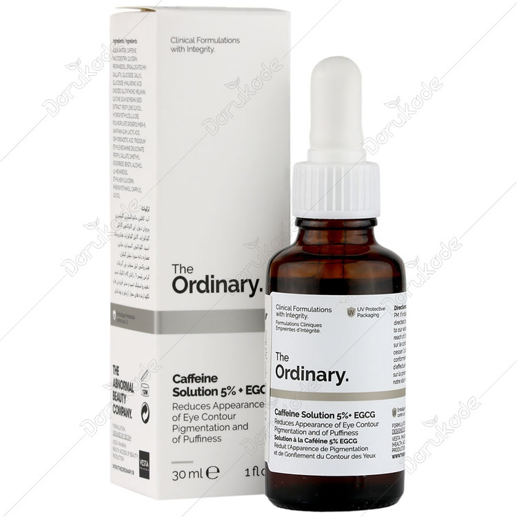 سرم دور چشم کافیین 5 درصد اوردینری محصول کشور کانادا و حاوی 5% کافئین و ماده موثره چای سبز (EGCG) بوده که باعث کاهش تیرگی و لک، پف و چین و چروک دور چشم میشود. فرمولاسیون سرم کافیین اوردینری شامل مواد آبرسان و رطوبت رسان بوده که چین و چروک دور چشم را کاهش داده و پوست دور چشم را استحکام میبخشد و باعث افزایش جریان گردش خون مویرگی دور چشم میشود. همچنین با ابرسانی موثر دور چشم توسط سرم کافئین اوردینری تیرگی، کدری، خستگی و لک های ناحیه زیر چشم به طور قابل توجهی کاهش میابد. سرم کافئین دور چشم اوردینری حاوی آنتی اکسیدان و مواد ضد التهاب بوده که از پوست در برابر آسیب های محیطی از جمله نور خورشید محافظت میکند. بافت سرم ضد پف دور چشم کافئین اوردینری سبک و زودجذب بوده و بعد از استفاده سوزش و حساسیتی برای پوست ایجاد نمیکند. فرمولاسیون سرم کافئین اوردینری فاقد پارابن، سیلیکون، الکل و ترکیبات حساسیت زا و ملتهب کننده میباشد و استفاده از آن تا 2 مرتبه در روز باعث شادابی و سلامت دور چشم میشود. این سرم مناسب خانم ها و آقایان و انواع پوست، حتی پوست های حساس میباشد.
