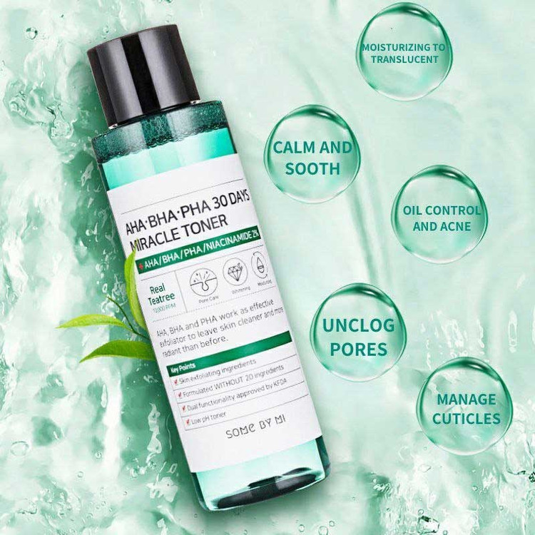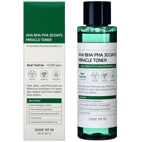 پوست شما فقط برای 30 روز به این تونر نیاز دارد. تسکین و لایه برداری روزانه پوست با تونر میراکل سام بای می Miracle Toner حجم 150 میل، مناسب پوست های حساس و آسیب دیده، غنی شده با عصاره طبیعی درخت چای که مشکلات پوستی را به سرعت و با ملایمت بدون ایجاد حساسیت بهبود میبخشد. این تونر کاربرد دوگانه ضد چروک و روشن کنندگی دارد. نیاسینامید باعث روشن شدن پوست و آدنوزینگ دارای خاصیت ضد چروک میباشد. وجود pH 5.5 در این تونر باعث تسکین پوست های قلیایی شده میشود. و با متعادل کردن سطح pH پوست از بروز جوش جلوگیری میکند. و پوست را سالم نگه میدارد.
